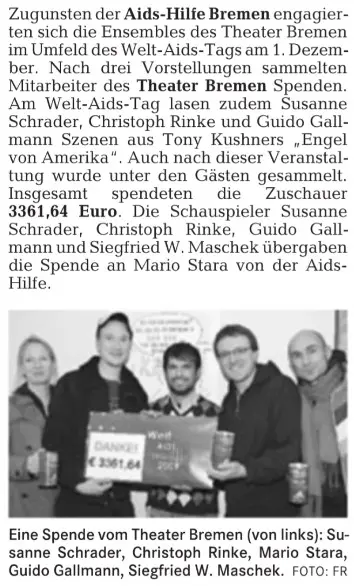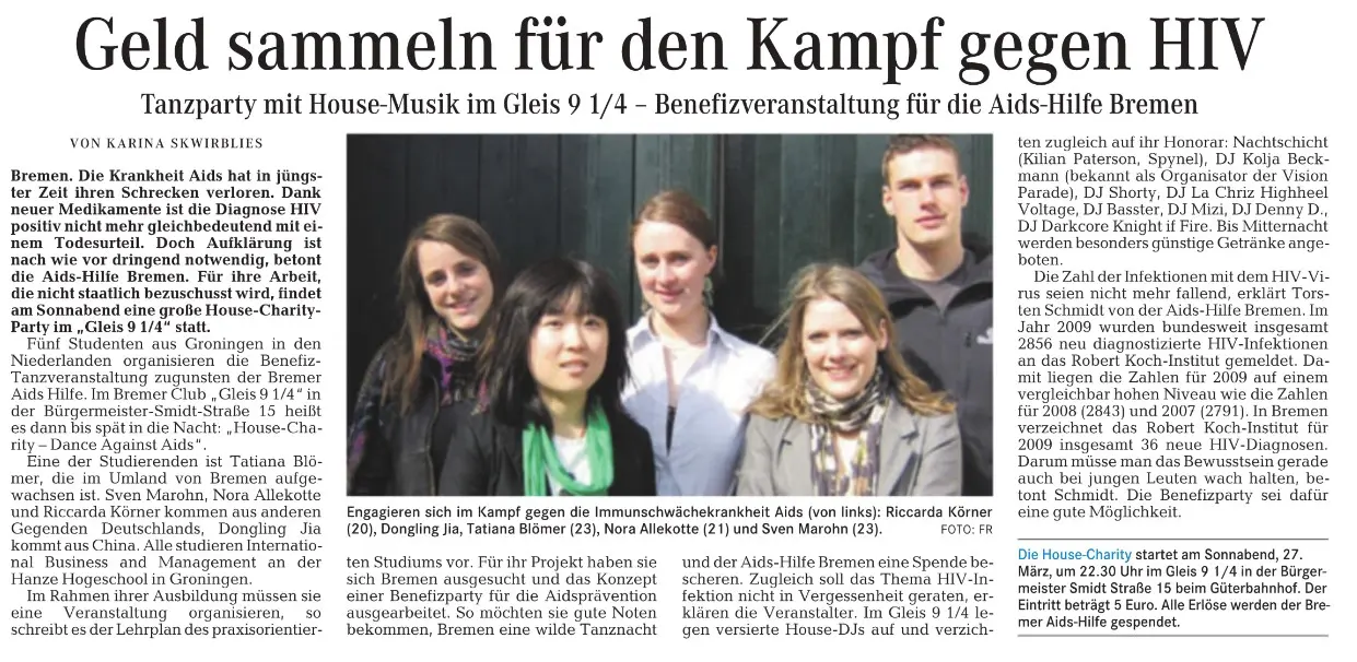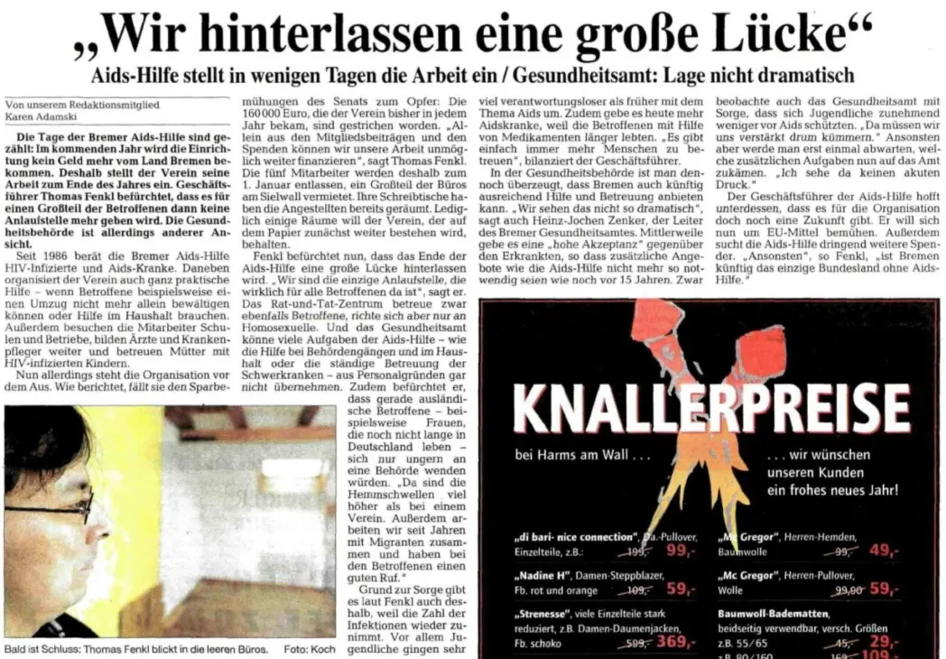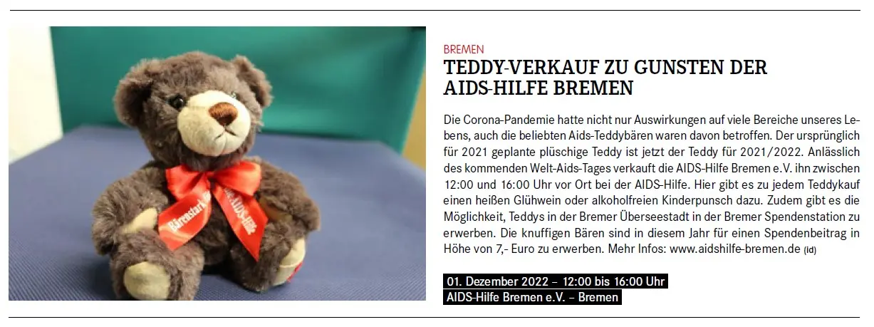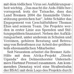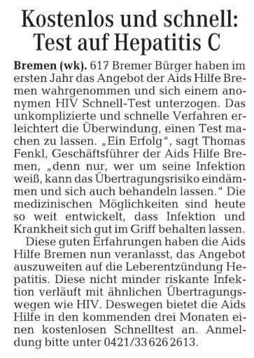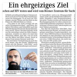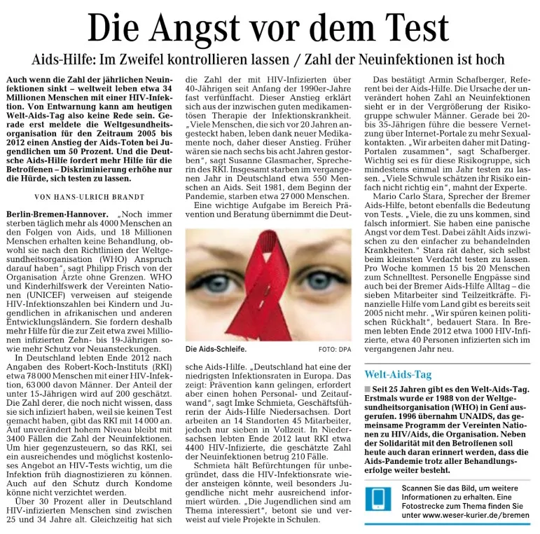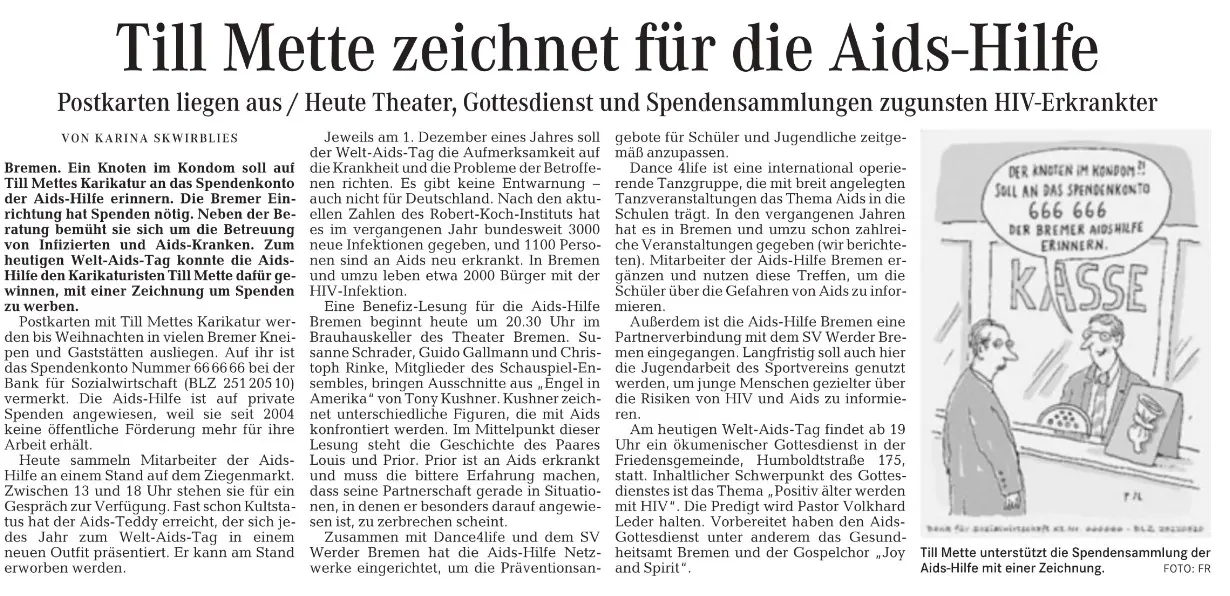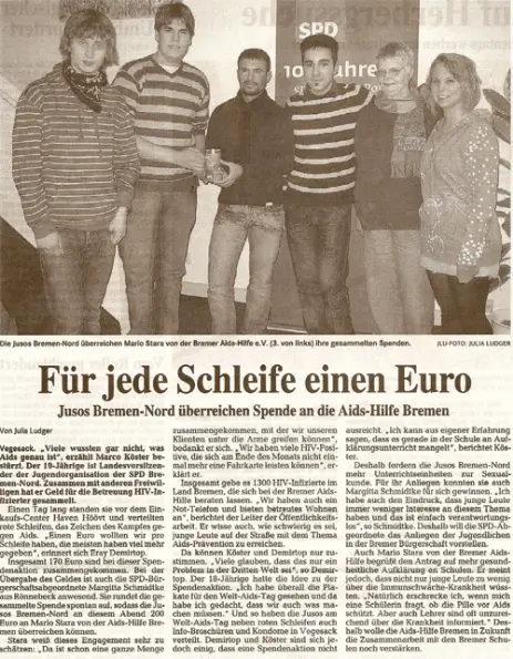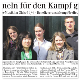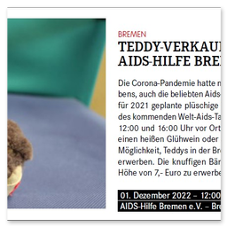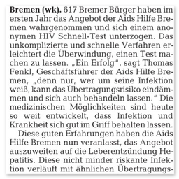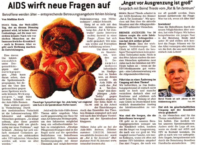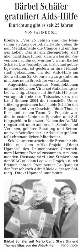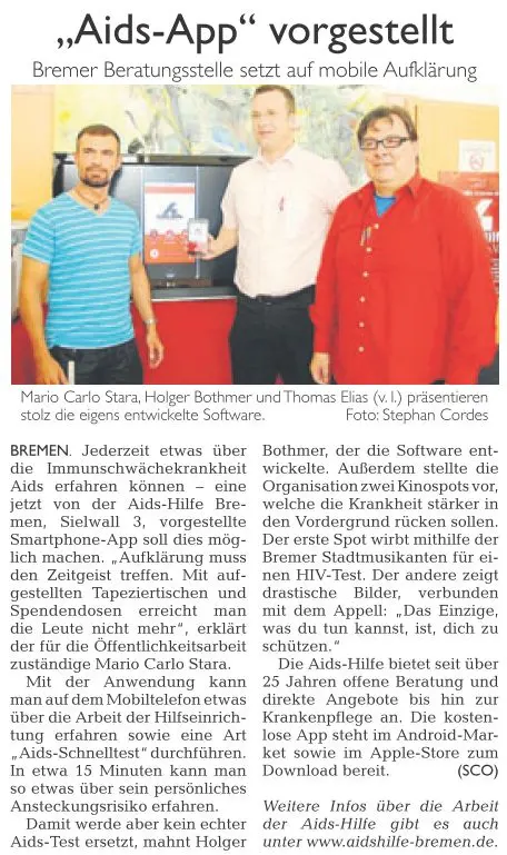 Zahlreiche Auftritte aus Talkshows, Regionalnachrichten und weitere Videos der AIDS-Hilfe Bremen e.V.finden Sie auf unserem YouTube-Kanal. [ https://www.youtube.com/user/aidshilfebremen ]Die AIDS-Hilfe Bremen e.V. bei Radio Bremen 4 (Happy Hour)Am 07.10.2011 waren Kollegen der AIDS-Hilfe Bremen e.V. in der Morgenshow bei Bremen 4 als Talkgäste eingeladen.
